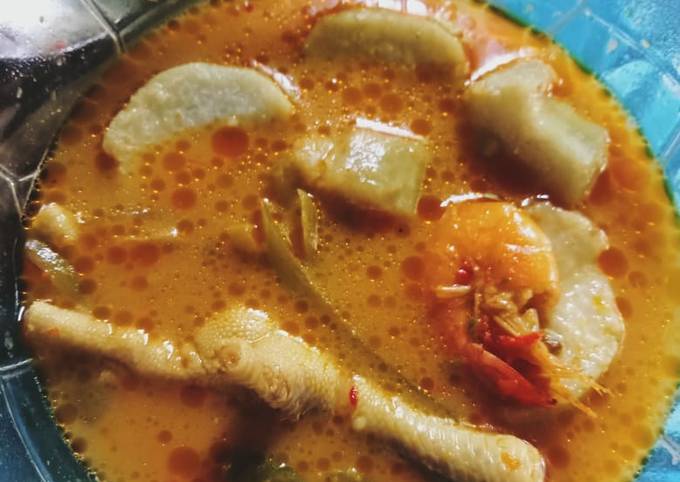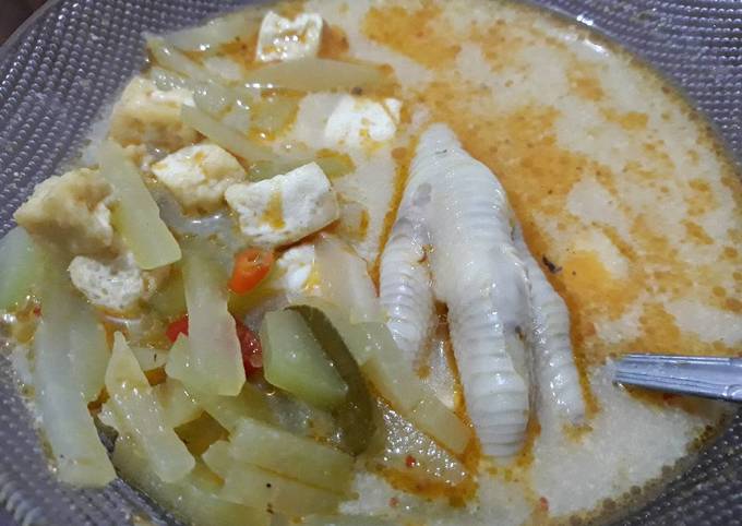 Sayur lodeh manisa dan ceker. 5 buah ceker ayam. Masak lodeh sampai ceker cukup empuk kemudian masukkan labu siam.