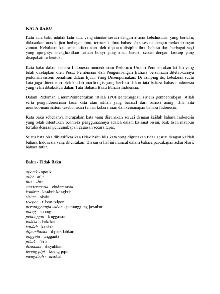 Contoh Kata Baku Dan Tidak Baku Materi Pelajaran 1